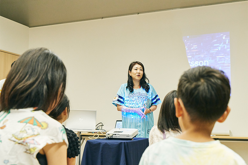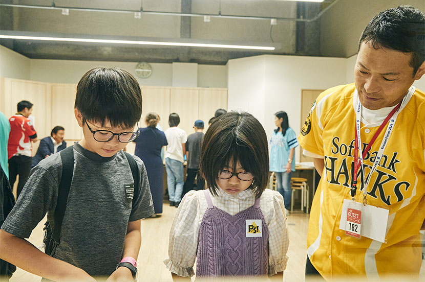 冒頭、各社からの会社紹介が行われたほか、福岡ソフトバンクホークス 前監督 球団統括本部付特別アドバイザー 藤本博史氏が特別ゲストとして参加。「今日は私も勉強させてもらいたいと思います」と挨拶すると、親しみのある地元球団を率いた名将を前に保護者や子どもたちは一様に目を輝かせ、和やかな雰囲気の中でイベントはスタートしました。