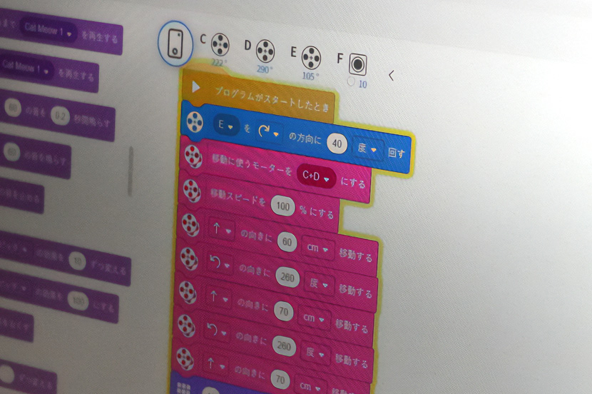 距離・回転角度・速度の絶妙な調整に試行錯誤。夢中で取り組むプログラミング