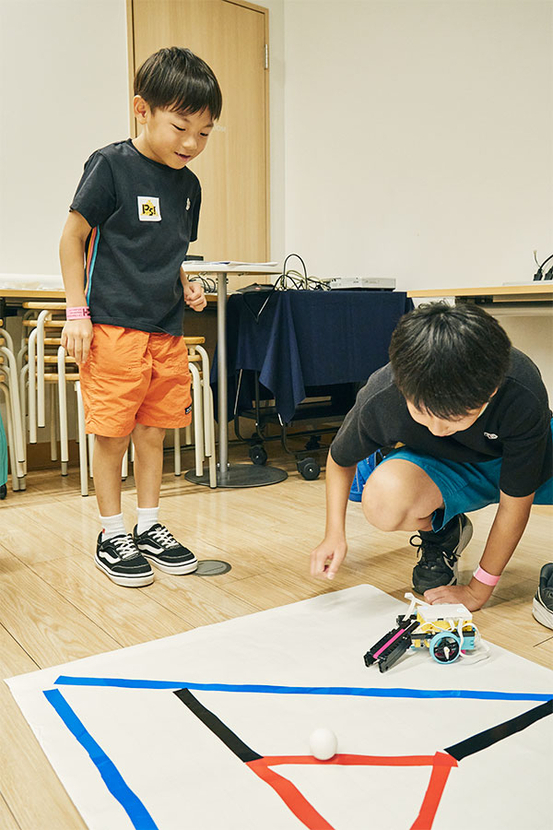 ある程度動きが固まってくると、さらにスピードを追求したり、ゴールした後のライト点滅や効果音のパターンに工夫を凝らしたりなど、遊び心を発揮するチームも続出。最後に行われた審査会では、1組ずつ走行を披露しました。走行ルートの精度やスピード、ゴール時の演出などを採点し、上位チームが表彰されると、会場には子どもたちの誇らしげな笑顔と拍手が広がりました。