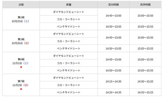 日本シリーズ直前限定!特別企画「練習見学+フリー見学コース」 購入サイトはこちら