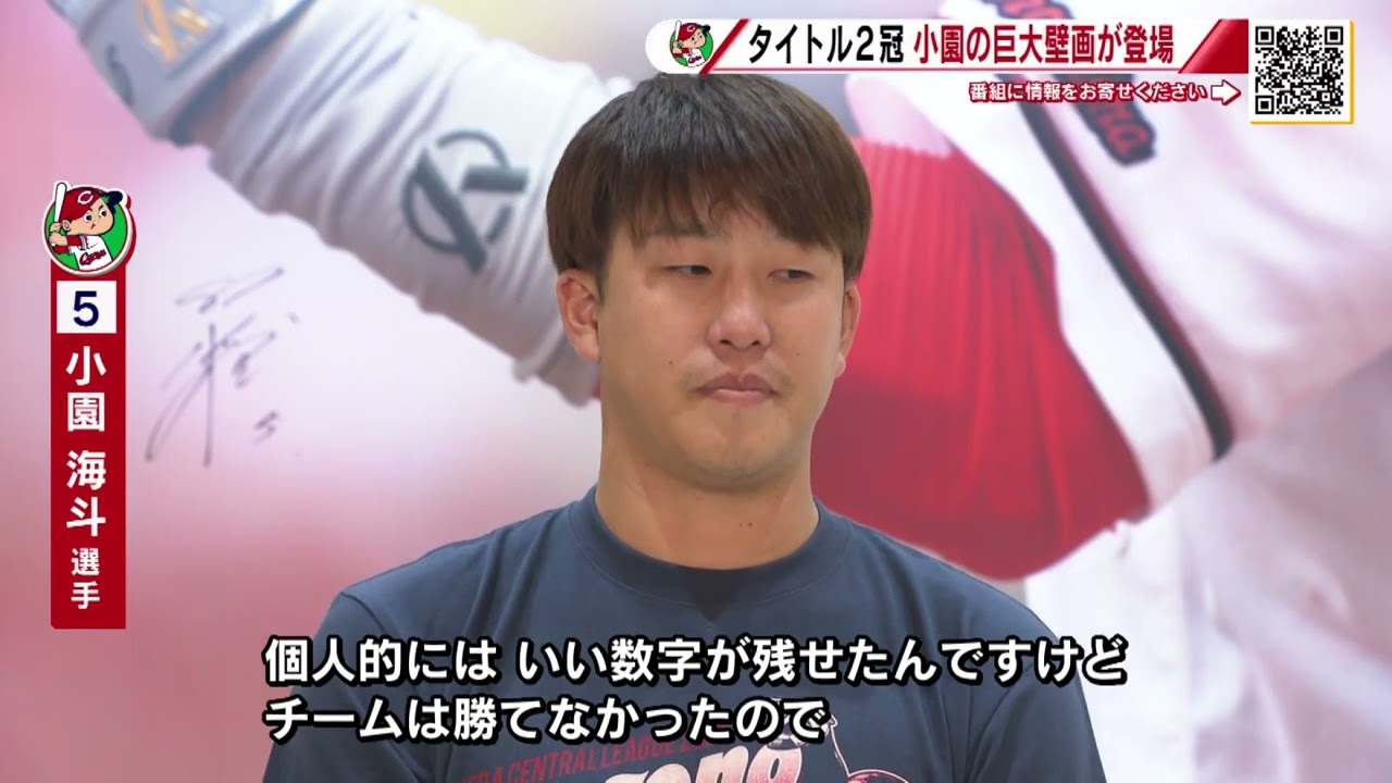 【打撃2冠】「ここぞの小園」小園海斗選手の巨大壁画がマツダスタジアムに登場!最高打率、最高出塁率のタイトル獲得を記念して【球団認定】カープ全力応援チャンネル