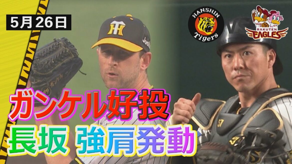 プロ野球交流戦、パ・リーグ首位楽天との3連戦第3戦、先発ガンケルは打たれたヒットは内野安打2本を含む3安打のみ、7回を無失点に抑える好投を見せます。女房役の長坂も2度、盗塁を刺すなどガンケルを援護。甲子園を沸かせました。しかし打線の援護なく連敗を喫しました