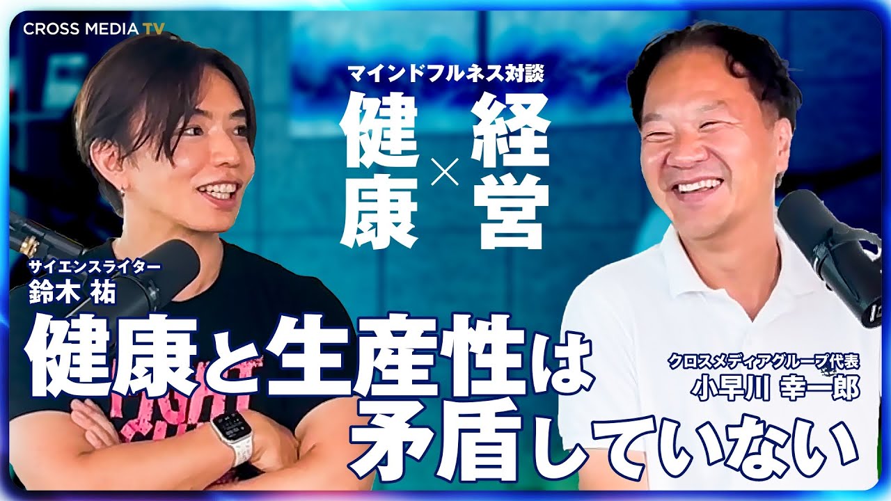 よくやってるのは健康なやつがいかにかっこいいかっていうのを示すよく言われるのはほら考えないことみたいな言うじゃないですか あれではないんですよね。 今考えてることにちゃんと意識が向かってる状態前にてあ 昔は夜型かっこいい酒飲むのかっこいいタバコ吸のかっこいいだったかもしれない逆になってるから変更プログラム導入してた場合って 1ドルの投資に対して3 ドル買ってくるらしいんですよ。 ええ、僕たちはゆり世代になんか気合が足りないとか南弱だとか言うじゃないですか。でも全然ゆり世代の方が世界で勝ってるし、しかも勝負良いんですよ。 確かに。確かに。 [音楽] クロスメディアグループの、え、代表してます、え、小川孝一郎です。あとは、あの、鈴木さんの担当編集者もさせていただいてます。はい。 サイエンスジャーナリストの鈴木です。それはま、論文読んだりとか専門家にめちゃめちゃインタビューしたりとかしながら最新の科学的な見を、ま、分かりやすく伝えるような仕事してます。 鈴木さんとね、あの私あれなんですよ。あの同い年なんです。 1975で鈴木さん早生まれですからね。 2 月ですけど、学年一緒で、ま、私はそのままやってますし、鈴木さんも近しいことやってますけど、お互いキャリアは編集者としてね、スタですからね。 そう、そうね。だからすごいたんで、え、 共通してることは多くて、 健康とあれですよね。 健康と生産性って矛盾してなくてあれですよね。繋がってますよね。 まあ、そうですね。ま、そのおっしゃることは分かります。そのあるでしょうね。労働さえ増やせばなんとかなるだろうから睡眠削って 飯も適当なもんで済まして時間さえつけなんとかなるって発想は非常に分かりやすいなと思います。 うん。うん。 ただまあ研究見てみもう一発でやっぱ睡眠がね一 晩眠んなかっただけでもIQ ってめちゃめちゃ落ちるしうん。うん。 そしたら翌日の生産性なんでもう 1/6それぐらいに下がるから うん。 それそんなこと長期でやったら絶対も打たないです。 うん。もしかしたら1 週間単位とかだったら成り立つかもしんないですけど 1年2年とかやってたらね 絶対トータルの生産性差下がるのは間違いないことであったんですね。 生産性ってこう例えば切り方がこう1 時間あたりのアウトプットとか うん とかなんか多分そういう切り方の数字の出し方が多いと思うんですけどは 生産性上げるために労働量を投入するっていう考え方はなんかちょっとおかしいですよね。 なるほど。 生産量を増やすための労働増やすっていうのは分かるんですけど、生産性はむしろ労働投入しない方がいいですよね。 ま、時間の質を上げるっていうことだと思うんですよ。健康経営。うん。うん。うん。 そうですよね。時間のね、上げた方が絶対いい間違いなくて。 うん。うん。 健康のダメージっても想像以上に下がるんすよね。 本人が思ってるよりも。うん。うん。 うん。ま、モチベーションもそうだし。 うん。脳の回転の速さもそうだしね。 うん。全て下がってしまうから。 うん。 それを補ってあまりそれを補うるために労働足してもなかなかうまくいかないですね。 うん。 なんかその賢い人いるじゃないですか。 すごいこう賢い人。 はい。ま、例えばIQ が高いっていうのかな。うん。例えばなんかいい大学行って はい。 なんかすごい、あの、なんか有名な会社行ってみたいな感じの人いますけど、仕事ものすごいやって体壊しちゃうっていう人結構多いじゃないですか。 ああ、多いかもしんないですね。 え、で、結局長い人生で見ると、 あの、生産性が低いっていうことになりますよね。 ま、長期で見たらそうかもしれない。 確かにその、その場、その場では頭いる人できちゃうから。 うん。 これをそのまま積み重ねて言ったらすごいことになんじゃねえかって初単純な発想で突っぱしっちゃう人はおるかもしれないですね。 うん。それはうさぎと亀みたいなもんかもしれないんですけど、 なんでその頭いい人がそういうこと分からないんですかね。ああ、カッシングするからでしょうね。 ああ、 頭い人と意外とバイアスが大きいってのはよく言われることです。あ あ、そうなんですか。え、 頭いい人結構インボーロにはまったりであるとか そういうことは多いんですよ。多にして何がなんでそういうことが起きるかっていうと頭がいいからうん。 陰謀論で明らかに間違ってると思とこあっても それを自分で補強する材料を持ってこれれるんですよ。 はい。お でよいよこう変な理論にはまっちゃうっていう。 ええ、なるほどね。 結構間違いがちなんですよね。 ああ。 だ健康がまあ大事だなっての分かってると思うんですよ。 でも俺は頭がいいからここを調整してやっていけば壊さないはずだ理論を自分で組み立てちゃって暴走しちゃっ あ。なるほどね。 いや、なんかこういうね、出版とかの仕事してるとやっぱり周りにすごいエリートだっ