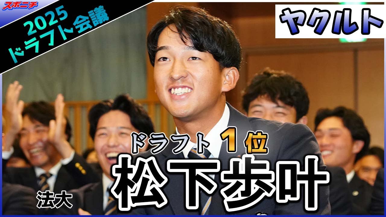 プロ野球ドラフト会議が23日、都内のホテルで行われた。ヤクルトから1位指名を受けた法大の松下歩叶(あゆと)内野手(22)は都内の市ケ谷キャンパスで会見し、「指名されたときは正直、びっくりした。でもこの1年間、ドラフト1位でプロに行きたいと目標を持ってやってきたので、非常にうれしい気持ちです」と喜びを語った。