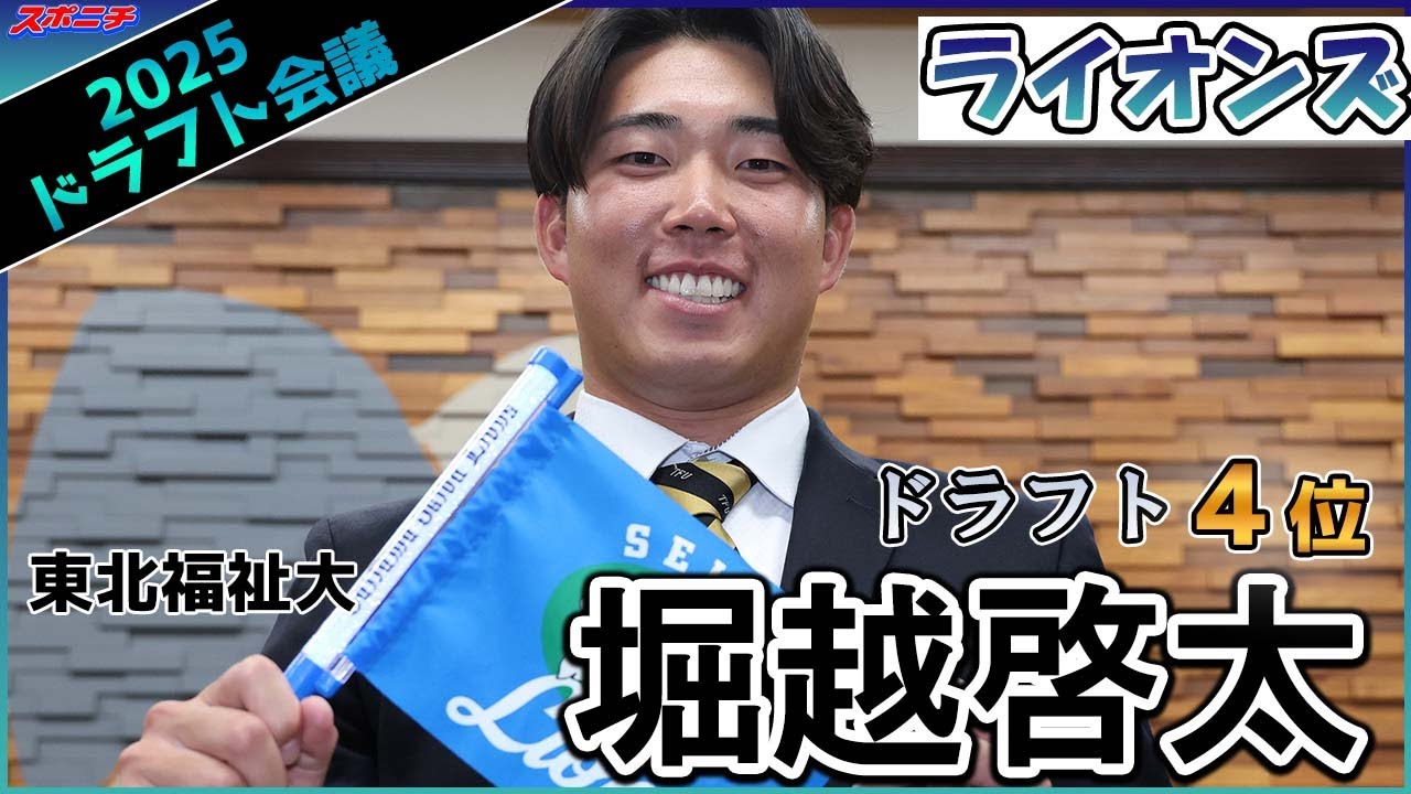 はい、ありがとうございます。 じゃ、その次の隣お願いします。笑顔です。はい、ありがとうございます。すま、こっちお願いします。ごめございます。 ありがとうございます。 指名を受けても今のな思いを聞かせてください。 やはりこう小さい時からずっと憧れ憧れてきたユニフォームにあの袖を通せるっていうのは本当に嬉しい気持ちです。 地元の埼玉の球団から指名ということで初めてプロ焼きを見たのも西武球場 はい。そうでした。 そこの球場でプレイをすることになりますがその思いはいかがですか? 本当にこうずきっと憧れてた場所ですしユニフォームなので本当に嬉しい気持ちがあります。 え、今回ご自身では2 回目のドラフトでした。 というとどのような思いましたか? 本当にあの高校時代あの 4 年前の本当この日にとても悔しい思いをしてたので、あの 4 年後のこの今日に向けてその日からやってきたので、ま、こういう形で指名していただいて本当にはい、嬉しいです。 指名を受けた瞬間はどんな気持ちになりましたか? ちょっとあの涙がこぼりそうだったんですけど我慢してはい。 喜びました。 この今の指名を受けた思いや、え、感謝などは今に対したいと思います。 やはり1 番は両親に感謝の気持ちを伝えたいなって思ってます。 ありがとうございます。 え、取、ま、早い段階からあの大きなあのドラフト候補として大きな収を集めていましたが、そのような中でプレッシャーなどはあったんでしょうか? いや、もう本当にあのこうやってあの 1 年生の春から投げさせていただいた服次第のスタッフの方には本当に感謝してますし、あの本当プレッシャーというよりかは常にこう課題だらけの日々だったので本当それにその課題を潰すために練習してきてたので あまりプレッシャーっていうのは感じなかったです。ま、その改めてその次第で過ごした 4 年間でその課題というところをどんなところを磨いてきましたか? やはりこう力であの押していくっていうのが、ま、自分の 1 つのスタイルではあるんですけども本当それしかできなかったっていうのが入学当初だったので本当そこの引き出しを増やしていけたのがすごい成長だなっていうような感じてます。 改めてご自身の選手としての強みとそれをプロの世界でどのように生かしていきたいか教えてください。やはりあのストレートの急速位と回転数っていうのは自信持ってるものがあるので本当そこをプロの世界でもあの勝負していけたらなと思ってます。 ありがとうございます。そしてまた同じくドラフトコポ桜井投手とも同じチームメイトとしてプレイをされてきました。 ま、桜井投手もあの一緒に精査琢磨をしてきた人だっていう風なお話ありましたけれども、堀にとってはどのような存在でしたか?やはりこうピッチャーのタイプとしてはすごい今逆のタイプなんですけど本当に隣にいてくれたことで自分にないものを常に吸収できていたので本当にこうあの仲間にいい仲間に恵まれたなっていうのはすごい感じてます。 購入戦でもしかすると投げ合いが実現するかもしれませんが、その辺の期待とはどうですか? いや、本当にあの一軍の舞台で投げるっていうのがこう今日からまた夢になりましたしそこに向けて頑張っていけたらなと思います。 え、ま、ここからが野球選手としての人生のスタートだと思います。 1 年目の目標もしありましたら教えてください。 やはりあの、まだこの自分も大学であの 先発と中継っていうのはどちらもやってて 、ま、球団側からどのようなこう評価だっ たり、どのように気をしていただくかって のはまだわかんないんですけど、ま、 どちらにせよ新人というものには資格が あると思うので、そこに向けて頑張って いきたいと思います。 そして将来的にはどのような選手になっていきたいという思いありますか? 本当にあの息の長いこう長く活躍できる選手になっていけたらすごく思ってます。