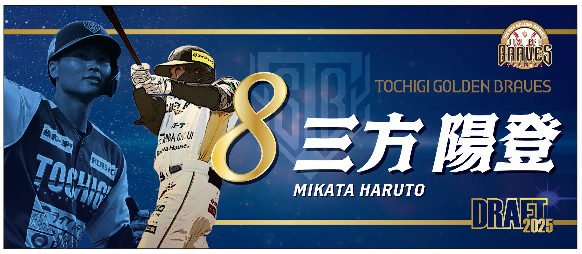 栃木ゴールデンブレーブスでは、2025年プロ野球ドラフト会議(10月23日開催)において、オリックス・バファローズより育成1巡名指名を受けた三方陽登(みかた・はると)選手のドラフト指名記念グッズを受注販売いたしますのでお知らせいたします。ファンの皆さまにとっても特別な1枚を、ぜひゲットしてください!!