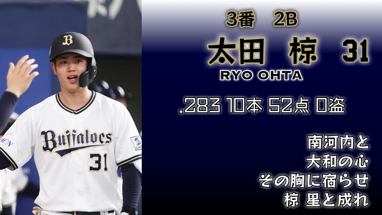 廣岡-西川-太田-杉本-中川圭-頓宮-宗-若月-紅林-九里-宮城-曽谷-田嶋-エスピ-森-西野-大城-ディアス-ぶつけろ熱意(麦谷-来田-大里-渡部-福永)