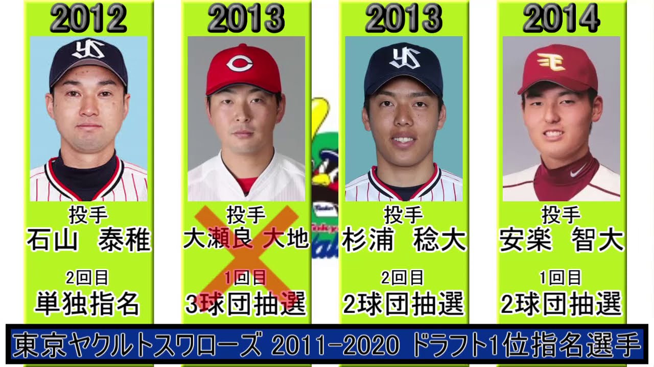 2011~2020年のドラフト1位指名選手一覧です。 抽選外した選手も入っています。 #奥川恭伸 #村上宗隆 # 石山泰稚 #川上竜平 #杉浦稔大 #竹下真吾 #原樹理 #寺島成輝 #清水昇 #木澤尚文 【使用音楽】 魔王魂 https://maoudamashii.jokersounds.com/ DOVA-SYNDROME https://dova-s.jp/ Tokyo Yakult Swallows東京ヤクルトスワローズ石山泰稚 NPBHUB.COM | The Fanbase of Nippon Baseball & Nippon Professional Baseball