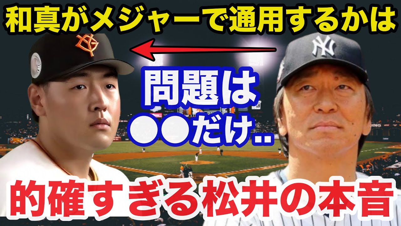 巨人岡本和メジャー遺跡決定に松井秀が 放っていたある本音が的確すぎると話題に 巨人は10月22日岡本和内野 ポスティング遺跡を認めると発表しました 。 本人と一緒に東京大手町の球団事務所で会見を行った吉村佐田明編成本部長は 今抱いてる夢をバックアップしながら挑戦させてあげたい と語りました吉村本部長は 本来だと2026年の海外FA 権を取得すると考えていました としながらも11 年間チームのために貢献してきた手法について それよりも彼の今抱いている夢を球団がバックアップ しながら挑戦させてあげたいなという気持ちになった と説明しました。また球団は初面で 30 歳になる前に大リーグでも自分の力を試したいとの本人の思いを受け入れポスティング制度を利用した遺籍交渉を了承しました。今後も本人が悔のない選択をできるよう全面的に支援してまいります とポスティング遺跡を容認するまでに至った経緯を説明。 来年6月に30 歳の誕生日を迎える前、選手として油が乗り切った段階で送り出すことを決断した形になりました。会見で岡本は この決断を尊重して背中を押してくださった山口オーナー、安倍監督、チームメイト球団の関係者の方、温かく応援してくれていたファンの皆様に感謝しています。 と挨拶しました。 2014年ドラフト1位で入団し、 2018年からレギュラーに定着。在籍 11年間で248本塁打を放ち、717 打点を上げた岡本。期までは首相を務める などチームの中心を担した。 岡本はメジャーへの強い思いについて ずっと行きたいって気持ちはあって 1 軍で試合に出るようになってから交渉の場でそういう気持ちがありますっていうのはずっと話をさせてもらってました と証 やっぱりすごくレベルが高くて世界 1 のリーグだと思うので僕もそこでプレイしたいなって気持ちで常にやってきましたしそこでプレイしたいっていう一心でそういう気持ちもありながら頑張ってきたっていうのもあります と語りました。そんな岡本にとって特別な 存在がいます。それが巨人の大先輩であり 、現在ヤンキースでGM特別アドバイザー を務める秀樹氏です。 レジャーを目指す岡本はかつて松井氏のイメージを聞かれ、 僕の中ではジャイアンツの松井さんというよりヤンキースの松井さんというイメージの方がすごく強くて と証 やっぱりすごい人憧れの人 と止まらない熱い思いとリスペクトを送っていました。そして 2018 年松井氏は宮崎キャンプで岡本をマンツーマン指導しました。 岡本は 大きかったです と答えて 自分の中でそこまで色々と言われたわけではなくワンポイントというか分かりやすくシンプルに指導していただいた と振り返りました。さらに岡本は松井市の指導について ジャイアンツの後輩という部分はあるんですけれどもあの時スイングルームで振らしてもらいましたし長く時間を咲いていただいたあの時に指導してもらったことは僕の中では宝物です。 と感謝しています。プロ3年間で1本塁打 だった岡本はこの指導を受けた2018年 に打率3割輪、33本塁打100打点と 飛躍を遂げました。松井氏は前術したよう にヤンキースでGM特別アドバイザーとし て務めており、その教え語の中には 2022年に62本塁打を放ち、アリーグ のシーズン新記録で本塁打王になった アーロンジャッジもいました。岡本は松石 から岩場そのアーロンジャッジ打法を伝授 された形です。 実際ヤンキース専門メディアのヤンクスゴーヤードも岡本獲得の霧札として松井氏の存在を上げています。松井秀が両チームと現在も関係していることを考えると彼に影響を与えることができる と期待を寄せ ヤンキースが本当に岡本を獲得したいのであれば松井と直接対面させるべきだ と交渉役に松井氏を指名しました。 こうした深い関係を持つ松井秀樹氏ですが 、実は岡本のメジャー挑戦についてある 重要な本音を語っていたのです。松井秀樹 が語った岡本の評価と懸念。2024 年ミスタータイガースの異名を取った掛氏 と松井氏は対談をしました。その中で市 から巨人の後輩。岡本が仮にメジャーに 行ってどうかと問われると松井は興味深い 回答をしています。まず打撃については バッティングはね、そこそこやるんじゃないかなと思いますね。 WBC でも売ってましたし。とか駆けもそれには同意し、岡本のバッティングは柔らかいと述べ、 2 人ともメジャーでも通用すると太鼓番を押しています。しかしここで松石が口にしたのは意外な言葉でした。松井市が岡本について最も気になるのはバッティングではなかったのです。 気になるのは守備位置で今でも結構コロコロ変わってるでしょう と松石は述べました。実際巨人は昨年からショートを守っていた坂本覇斗をサードにコンバートし、岡本は主にファーストを守っています。岡本は巨人に入団してからサード、ファースト、レフトを守ってきました。この守備チの問題について石は自身のジャーから非常に具体的な見解を示しました。 掛も以前からメジャー思考が