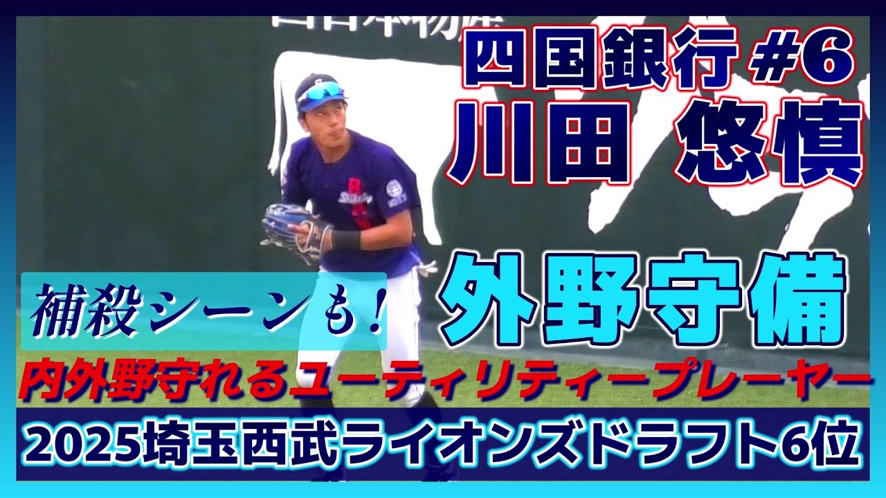 【≪2025埼玉西武ライオンズドラフト6位/外野守備/補殺シーン≫盗塁王を目指す!守備は内外野こなすユーティリティープレーヤー/2025日本選手権四国最終予選】四国銀行・川田 悠慎(高知高-四国銀行)