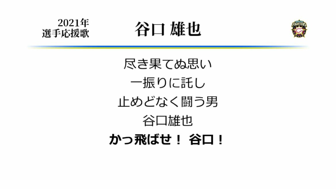日本ハム谷口選手の応援歌です。 今年の中継で、ゲスト解説の同学年ティモンディ前田さんが 谷口のことを間違って社会人卒と紹介してしまった一幕があって、 すっかり過去の選手になってしまったなあしんどいなあと感じました…。 Hokkaido Nippon-Ham FightersHokkaido Nippon-Ham Fighters (Baseball Team)Yuya Taniguchi (Baseball Player)なんぶふじ北海道日本ハムファイターズ応援歌谷口雄也 NPBHUB.COM | The Fanbase of Nippon Baseball & Nippon Professional Baseball