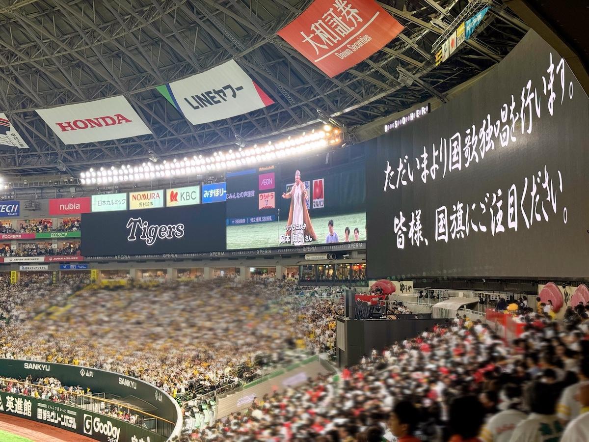 さらに、国歌独唱を務めたソプラニスタの岡本知高さんの伸びのある美しいハイトーンボイスは、ドーム全体を包み込みましたよ。