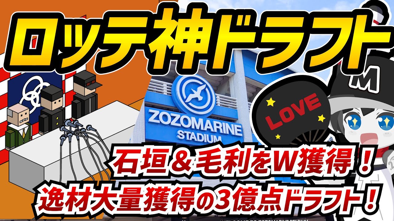 【3億点ドラフト】ロッテ神ドラフト過ぎてヤベーイ‼ 石垣&毛利投手を始め逸材を次々と獲得‼ 支配下指名から育成枠まで最後まで魅力たっぷりィ!