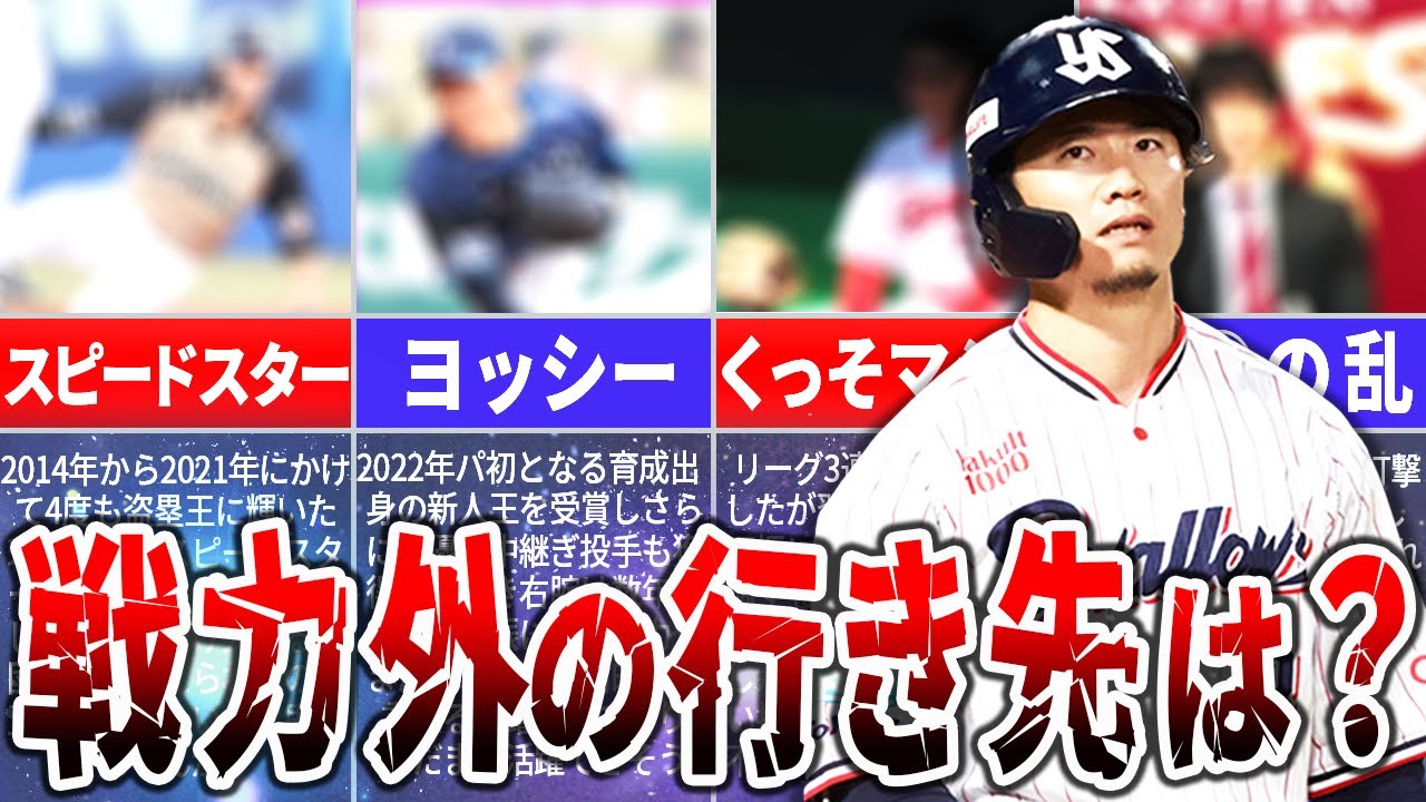 プロ野球会に非常な季節がやってきました 。各球団から発表される戦力外通告。その 中にはかつて盗塁王に輝いた スピードスター育成からハイ上がり新人王 と最優秀中継の2巻を達成したシンデレラ ボーイ。そしてリーグ3連覇の言動力と なった選手など1時代を築づいたスター たちの名前も含まれています。彼らはこの ままユニフォームを脱ぐことになるの でしょうか?それとも復活の舞台は用意さ れているのでしょうか?今回は彼らの 行き先を徹底予想します。さらに番外編で は実力以外の問題、つまりそ行の悪さから 事実上回を追放されるであろう選手たちの マ路にも迫ります。 [拍手] 最初にご紹介するのは東京ヤクルト スワローズを戦力街となった西川は樹です 。彼は2014年から2021年にかけて 4度も通るように輝いた9回屈の スピードスターであり、2016年の日本 シリーズではさよなら満塁ホームランを 放つなど1時代を築づいたスターでした。 しかしの盗塁王を獲得した2021年の オフ。長年在籍した北海道日本ハム ファイターズからノンテンダーF事実上の 自由契約を言い渡されてから彼の野球人生 は狂い始めます。新天地の東北楽天 ゴールデンイーグルスでは遺跡1年目に 108試合に出場し19盗塁と一定の活躍 を見せますが2年目にはわずか35試合で 打率1割8部1輪と完全に失速しオフに 戦力外通告そしてヤクルトに移籍した後も 同じパターンを繰り返しました。遺跡1年 目こそ113試合で打率2割6部と復活の 気兆しを見せますが2年目となる2025 年シーズンは出場49試合打率もキャリア ワーストに誓い1割7部4輪に低明し楽天 時代と同じく2年目のオフに戦力街という 非常な通告を受けることになったのです。 この状況を受け日本ハムのあるOBは まだまだやれる争奪戦になる可能性がある と期待の声も上がっています。しかし当 チャンネルではその可能性は極めて低いと 見ています。理由は彼の遺跡後の経歴に 共通する1年目の活躍と2年目の失速と いう不可快なパターンです。これは精神的 な村の大きさを感じさせ、悪く言えば契約 を勝ち取るとプレイが雑になってしまう 悪癖を疑わざるを得ません。さらに日本 ハム時代から突きまとうベンチでのコーチ との衝突などの問題、そして最大の武器で あったはずの足にも衰えが見え始めている 事実があります。そして最も厳しい現実が 外野種の層が薄くセリーグ再開に沈んだ ヤクルトでさえ、彼を戦力として見切った ことです。指名的に肩が弱く守備位置が レフトに限定されるという点も獲得を ためらう大きな要因となるでしょう。これ らの点を総合的に判断すると西川を巡って 複数球団が争う。争奪戦という展開は考え にくいと言わざるを得ません。では彼の 現役続行の道は閉ざされたのでしょうか? 獲得に名乗りを上げる球団があるとしたら それは非常に限定的なケース。すなわち よっぽど外野市の層が薄く若手に総類盗塁 の経験を伝えて欲しいという半分コチの ような役割を期待する場合のみでしょう。 実際彼は楽天時代に後輩のコブに盗塁の 技術を教え彼が盗塁王を獲得する石を築い た実績があります。この特殊な条件に 当てはまる球団として読み売り ジャイアンツが候補に上がります。 ジャイアンツは中田翔やおるなど実力は ありながらも癖が強いとされる選手を積極 的に獲得し起用してきた過去があります。 若い外野手が多いチーム事情から彼の経験 を生きた教材として活用し、勝負どころで のダイソの切り札として起用するために 獲得に動く可能性は0ではないと予想し ます。彼の3度目の正直となる復活劇を 私たちは見ることができるのでしょうか? [拍手] 続いてご紹介するのはわずか数年で天国 から地獄へと突き落とされたヒ運の シンデレラボーイです。埼玉西武 ライオンズを戦力街となった水信。彼の 野球人生ほどジェットコースターのような 奇跡を描いた選手はいないかもしれません 。2020年の育成ドラフト5位でプロの 門を叩いた水。そこから生上がり。 2022年突如して9回にその名をとかせ ます。60試合に登板し防御率 1.7735 ホールドポイントを上げパリーグの最優秀 中継投手に輝きました。さらに育成 ドラフト出身の選手としてはパリーグ史場 初となる。新人王のタイトルも獲得。 まさに誰もが羨むジャパニーズドリームを その腕で掴み取ったのです。しかし栄光の 時間は長くは続きませんでした。よく 2023年彼は原因不明の絶府長に陥り ます。自慢のストレートは急速を失い生命 線であるスライダーの切れも影を潜めまし た。2軍に広角すると防御率は10点台に まで落ち込みさらに右肩のコンディション 不良を発症。知事は3軍でボールボーイを 務めるまでに転落してしまいます。その後 なんとか1軍復帰は果たしたものの、 かつての輝きは戻りませんでした。 2024年も29試合の登板で防御率 5.28と結果を残せず。として迎えた 2025年1軍での登板はわずか5試合 失展こそしなかったものの四子球が多く不 安定な投球が続きシーズン途