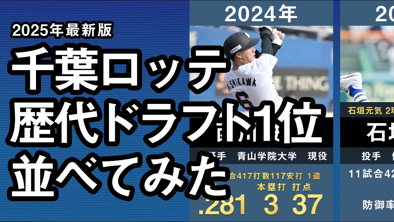 【ドラフト1位石垣元気】千葉ロッテの歴代ドラフト1位を34年間分まとめてみた。【2025年最新版 プロ野球 上田希由翔 佐々木朗希 藤原恭大 平沢大河 中村奨吾 石川歩 小林雅英 菊地吏玖】