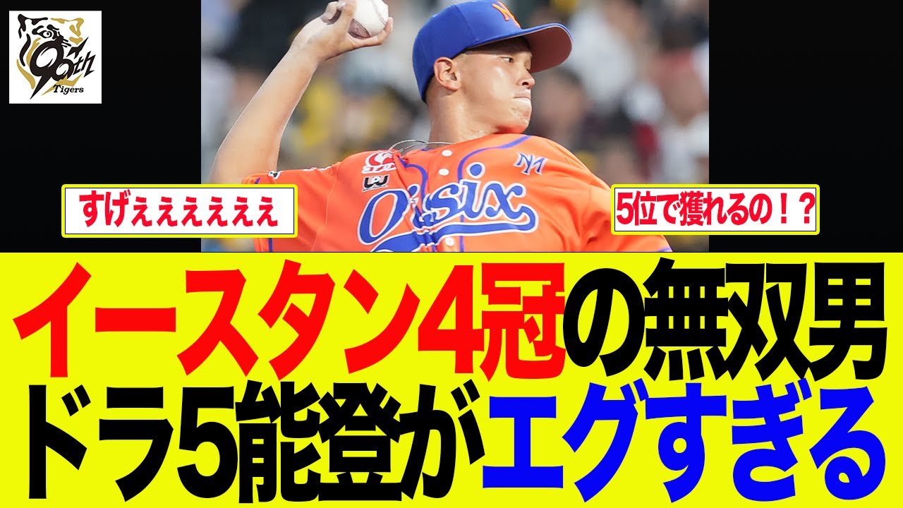 今回の動画はイースタン4冠の無双男ドラ5能登嵩都がエグすぎるとタイガースファンの反応をまとめた動画内容になります。