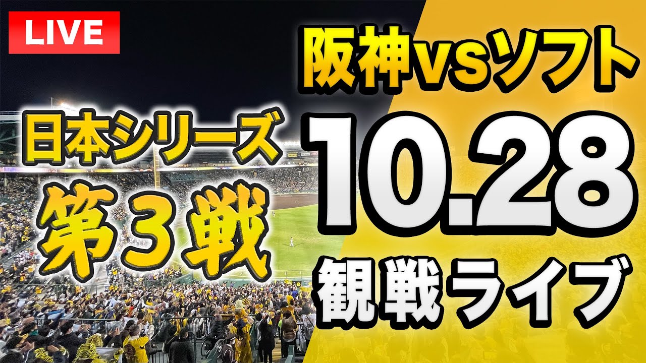 【プロ野球 阪神ソフトバンク 日本シリーズライブ】10/28 阪神タイガース 対福岡ソフトバンクホークスの日本シリーズ 第3戦を一緒に観戦するライブ配信です、本配信に試合のLIVE中継映像はございませんので予めご了承ください。