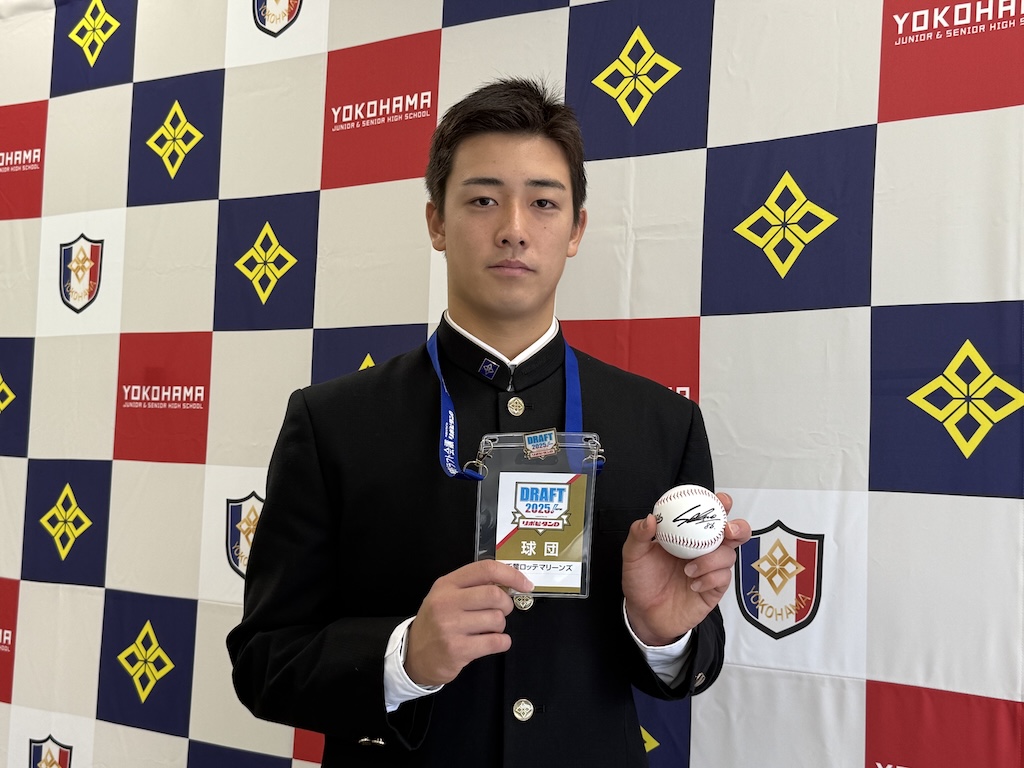 On the 28th, Lotte held a nomination speech for the third-round draft pick, Yoritomo Okumura (Yokohama High School), attended by amateur scouting director Yasuhiro Eno and scout in charge Ryuji Nakagawa.