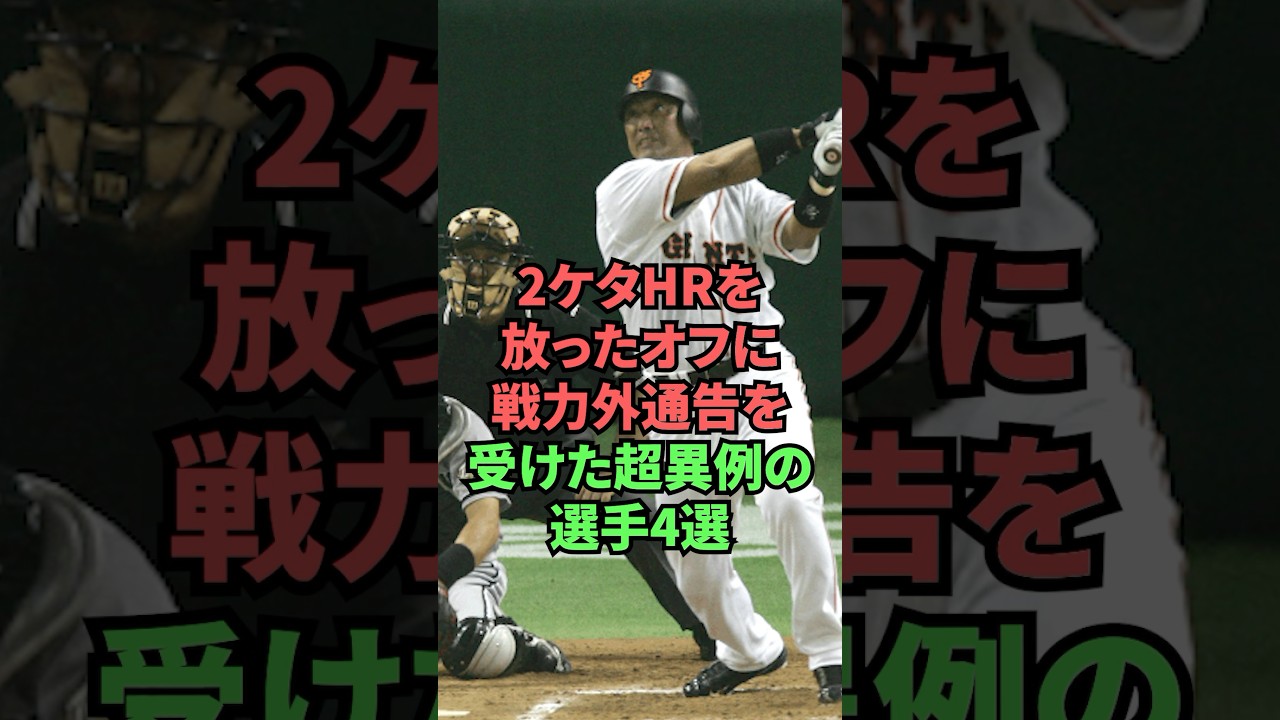 2桁ホームランを放ったオフに戦力街通告 を受けた長例の選手音泉1人目中村 乗リックス時代は現方を実質的な戦力外 通告だと捉えて対談するなど度々問題とし て取り上げられてきた中村乗博2010年 は楽天で13フォーマーを打ちながら戦力 外を受けた規定打席にも到達していたため そんな選手が戦力外を受けたことが当時 衝撃的な話題として取り上げられていた。 2人目村田週一20078年には2年連続 でホームラン王を獲得し、巨人遺跡も3回 ベスト9に選出されていた村田。2017 年も14本のホームランを放つなど活躍し ていたが、巨人は若返りを図るという理由 で村田を戦力にした。3人目清原和弘。 2005年38歳ながら巨人で22本の ホームランを放っていた清原。ところが時 の監督堀内常をで船中で清原が堀内との ハイタッチを拒否したり堀内があいつは 団体競技に向かないと言い放ったりと散々 で結局その年戦力を言い渡されてしまった 。最後の4人目内時代の巨人でもう1人 27本のホームランを話ちながらも戦力街 になったこの男。それはローズ。