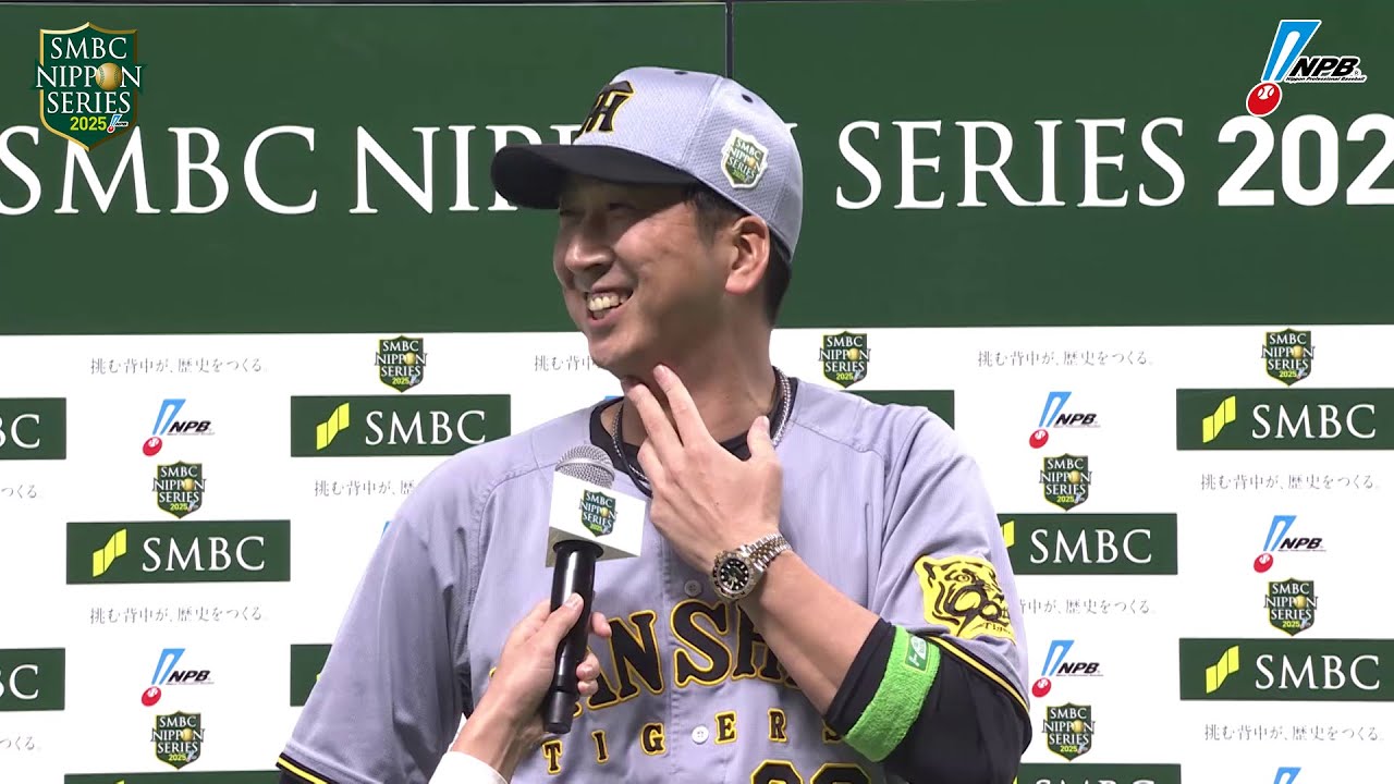 2025年10月25日(土)にみずほPayPayドーム福岡で行われた「 #SMBC日本シリーズ2025 」第1戦に勝利した阪神タイガース・藤川球児監督のインタビュー