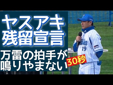 横浜DeNAベイスターズファンフェスティバル2022 オープニングセレモニーと表彰式の後、タイムテーブルにない山﨑康晃(山崎康晃)選手の軌跡の映像が流れて挨拶が行われた。 夢に向かってと言う話を前置きにしながら、予想外の残留宣言に場内は大歓声となり割れんばかりの拍手に包まれる。 その時間は30秒もの長さとなった。残留に至った経緯を語ります。 YOKOHAMA DeNA BAYSTARS山﨑康晃横浜DeNAベイスターズ NPBHUB.COM | The Fanbase of Nippon Baseball & Nippon Professional Baseball