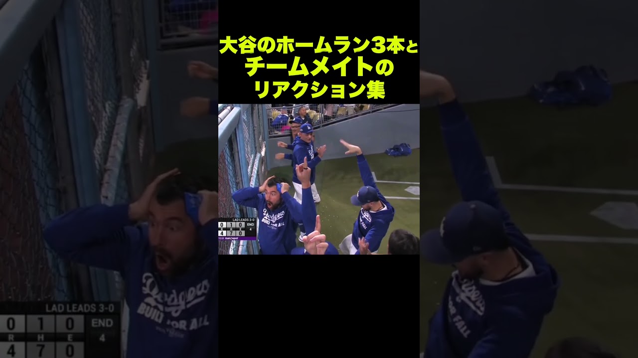 大谷のホームラン3本とチームメイトのリアクション集 #野球 #mlb #dodgers #ドジャース #大谷翔平 #shorts