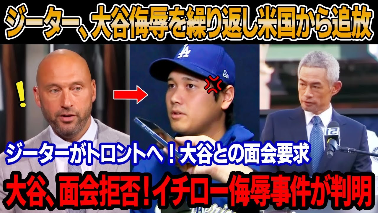 アメリカから追放された後、ジーターが激怒、大谷に侮辱と人種差別的な発言を続けた!ジーターがトロント行きの便に搭乗、大谷との面会要求!大谷、面会拒否!率直な一言でジーター赤面