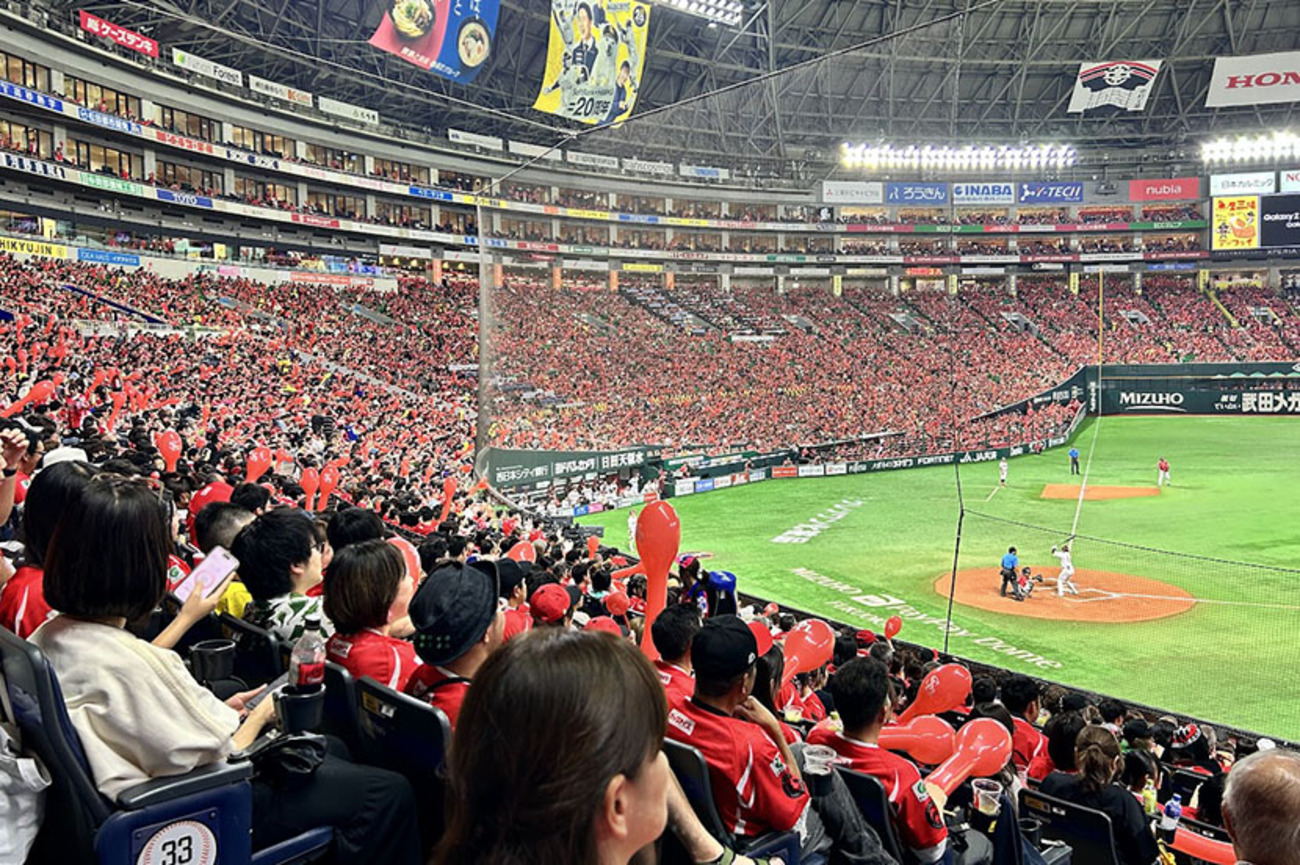 球場全体が「カチドキレッド」に染まる中、いよいよプレーボール!