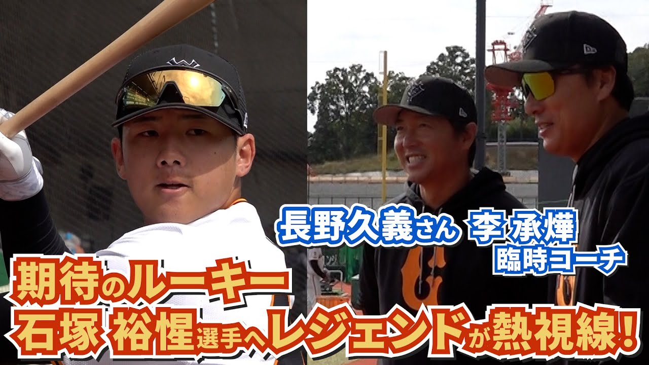秋キャンプ初日。臨時コーチを務める李承燁さんがルーキー石塚裕惺選手に熱視線!また、今季限りで現役を引退する長野久義さんが後輩のためにトスを上げるなどレジェンド2人が石塚選手に期待を寄せました!#新風 #ジャイアンツ #李承燁 #長野久義 #石塚裕惺