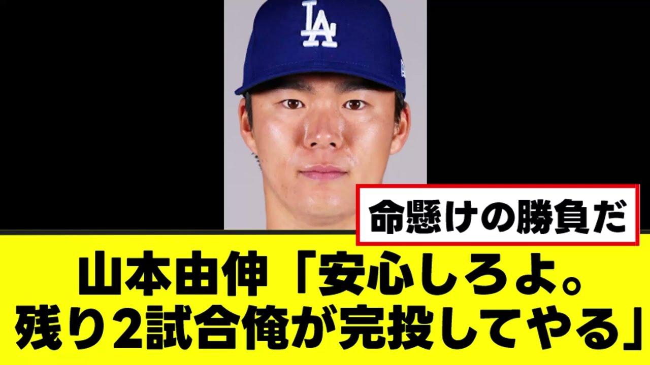山本義信後がなくなったドースにガちの名言を残す。 日本時間30 日ドジャースタジアムで行われたドースタイブルージェイズの WS第5戦で61 でブルージェイズが勝利。これで勝ち数はイズが [音楽] 3、ドジャースが2となり、2試合のうち 1°でもイズが勝てばイズの優勝が決まるというジャースにとっては絶対絶明の状況となった。これを受けてジャースのエース本信手が救うちの名言を残したとしてメリカで話題となっている。 日本時間11月1日にジェイズの本拠地が あるカナダトロントで行われる第6戦の ドース側の予告先発投手は第2戦で関東 勝利を上げた山本義信。これに対し山本 選手は俺がいない間になんてことになって んだ。安心しろ。俺が来た。残り2試合俺 がカ封して小兵が1発打ってそれで終わり だ。次の試合に全てがかかっているから 全てをかけて登板する。練習のボールは 絶好調だ。俺に疲れなどない。 前回の登板で俺が世界最強だということを確認できた。俺たちは優勝するよ。俺がいるからねと語っていたという。吉信と大谷みのチームで草。誠に申し訳ないが今回も命をかけて投げていただこう。 [音楽] 山雨山。 また山本義が人生をかけた登板に挑むのか。 何回でも全てを託される山本義。 吉信の発言がだんだん言ってない名言に近づいていってるの面白すぎる。 [音楽] もう大丈夫だ。私が来た。 なん球チャンネルは現在動画編集者を募集しています。興味のある方は動画概要にあるメールアドレスにご連絡ください。