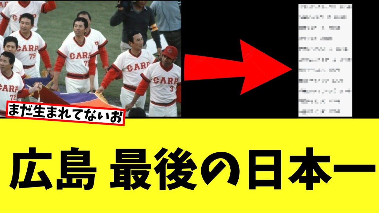 広島東洋カープ何やら最後の日本一らしい 。12球団最後の日本一ソフト バンクフォークス2025年DNスターズ 2024年阪神タイガース2023年 オリックスバファローズ2022年 ヤクルトスワローズ 2021年日本ハムファイターズ2016 年楽天イーグルス2013年読売り ジャイアンツ2012年ジバロッテ マリーンズ2010年西セーブライオンズ 2008年中日ドラゴンズ2007 広島東洋カープ 1984年 秋の野球チームだけ20 世紀に取り残されてて草。日本で 1番日本一から遠ざかってるのに日本で 2 番目にリーブ再会から遠ざかってる変な球団。 生きてる間に日本一見れるかな?やっぱ広島カープの日本一見たいな。生きてるに 1 度でいいから日本一見せてくれ。平成以降で日本一に慣れていない唯一の球団。 3年の時にできんかったの痛い。ご視聴 ありがとうございました。このチャンネル ではカープの情報を発信していきますので 、カープファンの方や野球ファンの方は 是非チャンネル登録お願いします。
