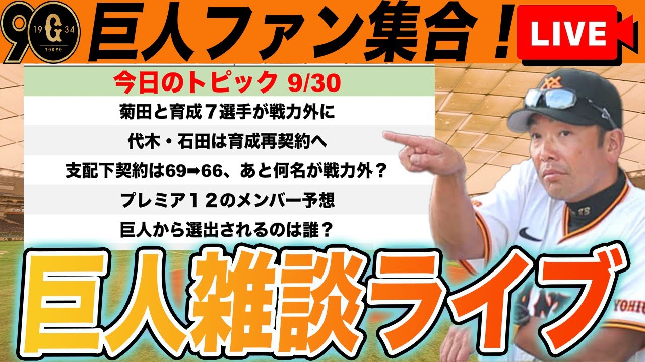 【巨人ファン集合】菊田戦力外に!今後の人員整理予想とプレミア12メンバー予想など巨人雑談ライブ 読売ジャイアンツ