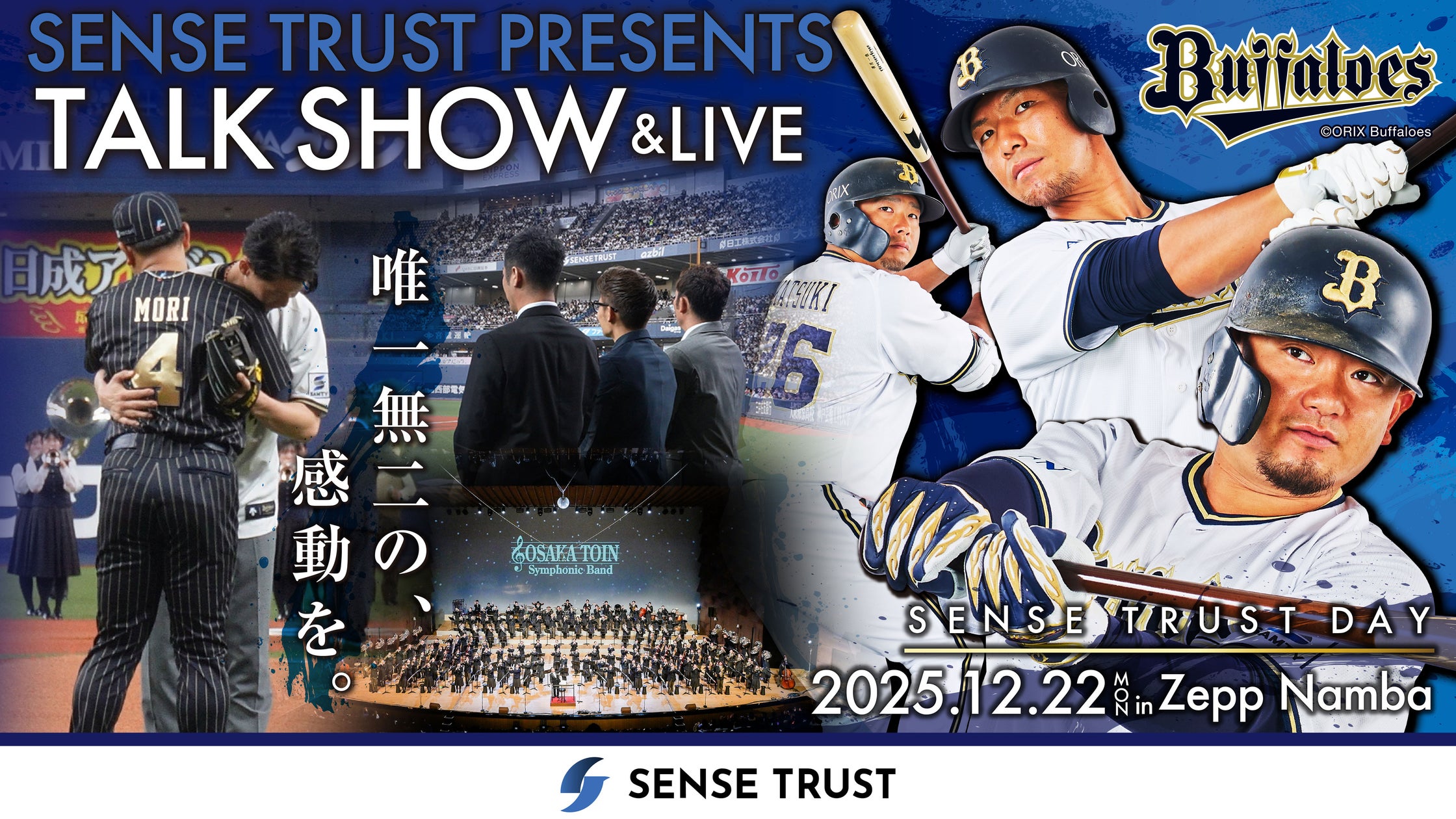 本イベントは、「唯一無二の、感動」をテーマに、スポーツ、音楽、そして逆境を乗り越え、夢を追い続ける人々のストーリーを通して、老若男女問わず「夢」を持ち続け、共有し、感動し合える世界をつくることを目的としています。今回は、「野球が繋いだ感動の絆」をメインに、今年6月15日に京セラドーム大阪で行われたSENSE TRUST DAYで交わされた物語の続きへご案内いたします。