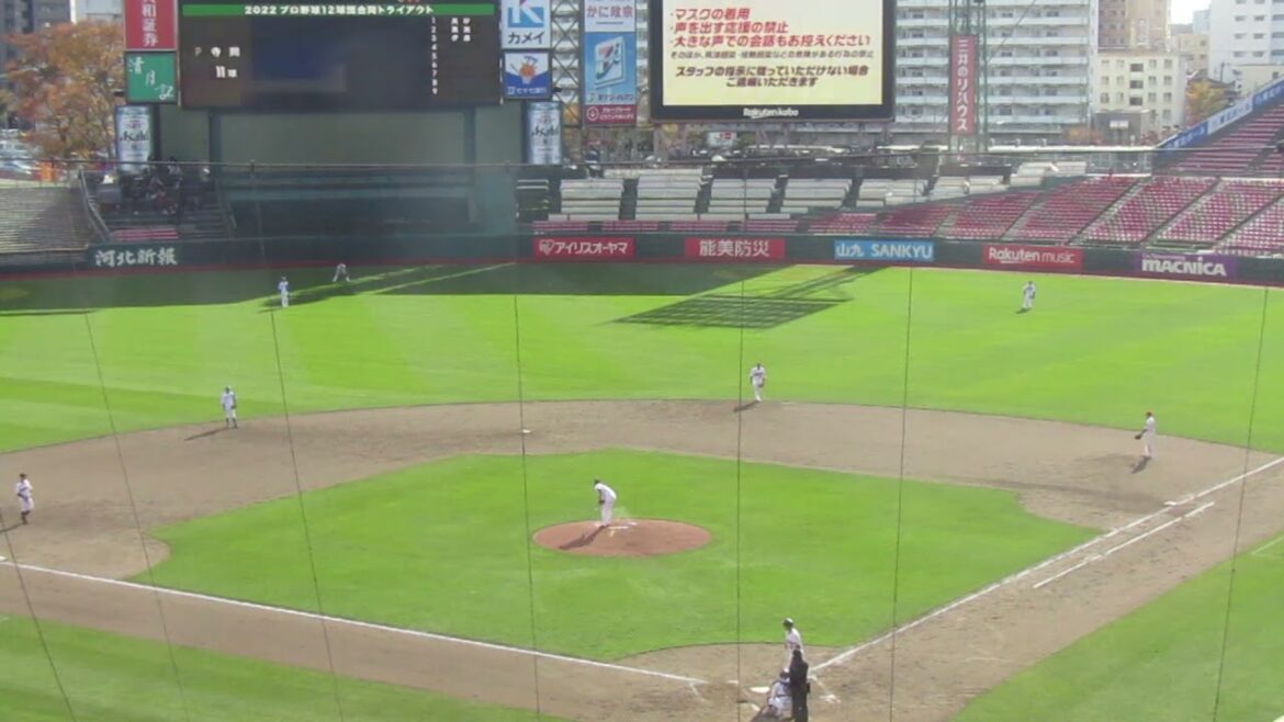 【合同トライアウト2022年11月8日】楽天 寺岡 寛治〜巨人 伊藤海斗をサードゴロに打ち取る