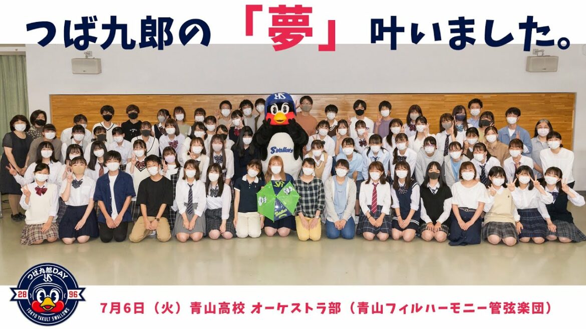 7月6日・7日 つば九郎DAY~七夕~のラッキーセブンに、つば九郎の「夢」が叶いました。以前は、鳥小屋に「青山高校」と「國學院高校」の生徒が演奏する音色が聞こえてきた。あの音色を聞くのが好きだったつば九郎が、両校にお願いをして・・・ついに・・・神宮球場で「東京音頭」が響きわたる!