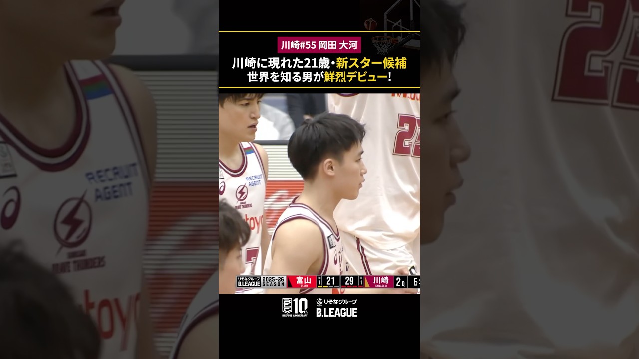 タイが入りますよ。昨日特別指定で加入が発表されました。 21歳県出身。 岡田は21 歳。その岡田がプッシュ上げていく。津山コーナー 3。 岡田が得点にいきなり絡んでいきました。岡田タイガーレルがゲームを作り出しました。さ、ここは岡田んでいく。 [音楽] [拍手] [音楽] 岡田タイガー岡田自分でおっと振り向いた。どうだ決まりました。リスティッチ山から回してここまたノールで今度は山内 [音楽] [拍手] いや岡タがすごいですね。ここでプレイが切れたところできるタイムアウトになります。 岡田ガ、岡田タイガが今度は自分で得点も決めていきました。 [拍手] これでオフィシャルタイムアウトルタイムアウトに入ります。 いや、目の前で川崎ブースターもこの岡田大ガのデビュー戦をマの当たりに [音楽]