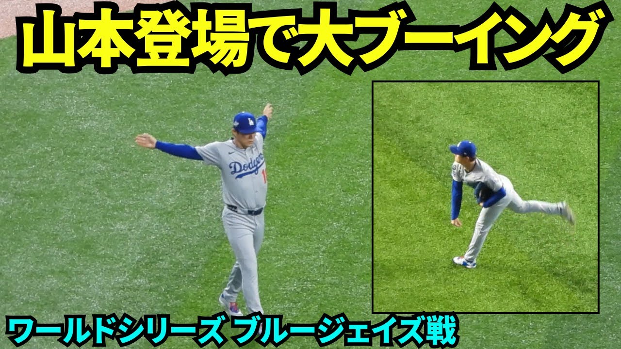 山本由伸がウォームアップに登場し大ブーイング!!でもブルージェイズファンもドジャースのエースの様子をスマホに収めたいみたいw 【現地映像】2025年10月31日 ワールドシリーズ ブルージェイズ戦