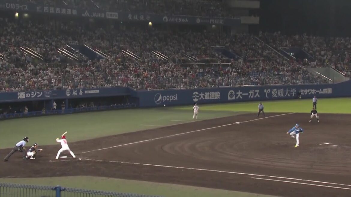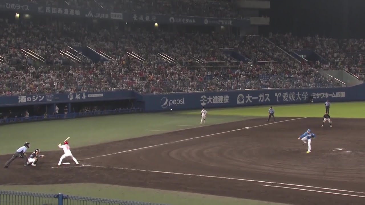 8回裏から登板した伊藤大海(日本ハム)が超スローボールで坂倉将吾(広島)をライトフライに打ち取る!