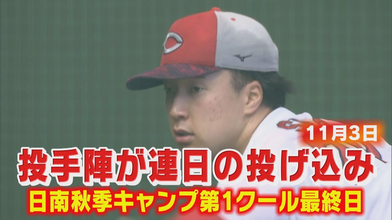 この秋打撃力向工場を課題にあげる矢野は朝の重点練習からバットを振り込みます。高さの異なる [拍手] Tきを打ち込むことおよそ 50 分間。福知のアドバイスを受けながら課題と向き合いました。一方当手人は昨日の紅白戦で登板した 4投手がブルペン入り。 この秋、スタミナ強化に取り組む佐藤が熱を見せます。 [拍手] 黒田アドバイザーの指摘を受けながら 80 球程度の予定でしたが、課題を修正したかったと予定を大幅に超える 214球を投げ込みました。 お、 少し急速は落ちたんですけど、ま、質は変わってないっていう風にクラさんには言われたので、ま、こう長い人投げても変わらないようにっていうところでブルペンでも意識して投げ込みたいなと思います。 [拍手] さらに大卒3 年目サワの滝田はこのキャンプ当手人最多となる 231 球を投げ込みました。新井監督からどんどん追い込めと激例も受けました。 [拍手] 昨日森さんが218期ぐらいで1 年間ロテを投げた人がここまでやるんだから、ま、そのぐらい投げないと追いついていけないというか、そういう気持ちもありましたし。 2 日連続で行われた後戦ランナー 1塁2塁、2塁は佐々木の場面でした。 ショートにセカンドランナー佐々木が走らないミスをします。 早速新井監督がきに指導しました。 さらにプロ2 年目を終えた中田優トがボンダに終わると間に合う間に合うかでポイント前に入って そうに 新井監督が気になったことをすぐに伝えるキャンプならではの地道なレベルアップが続きます。