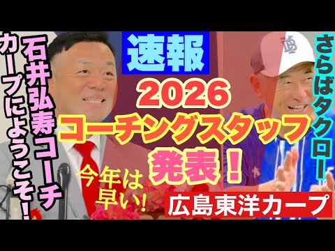 【広島東洋カープ】2026シーズンのコーチングスタッフ決定! 今年は早い! そして注目の打撃コーチは・・・!? 【石井弘寿】【石井琢朗】【朝山東洋】【東出輝裕】【新井貴浩】【カープ】