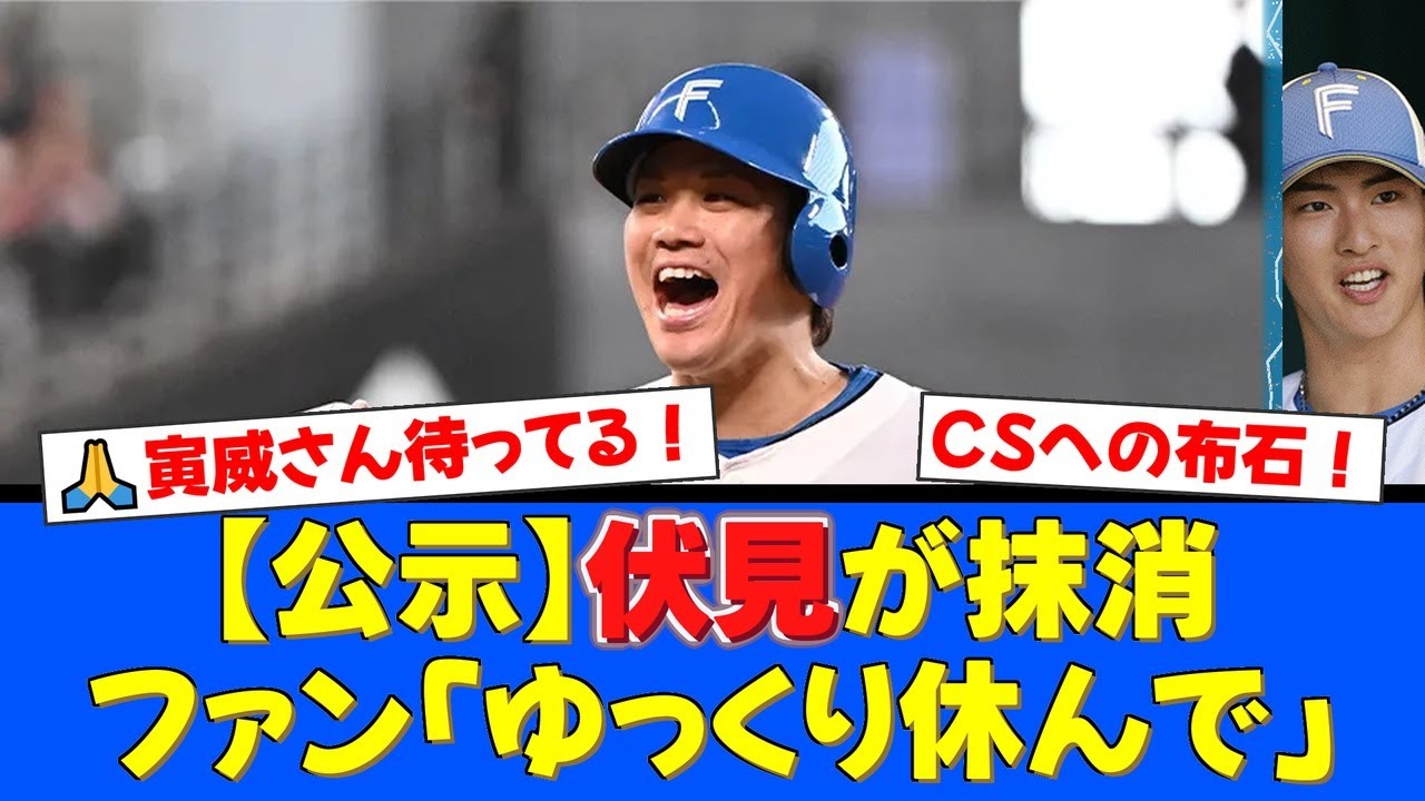 クライマックスシリーズを目前に控えた9月29日、ファイターズの伏見寅威選手が登録抹消となりました。この驚きの公示にファンからは様々な声が上がっていますが、多くはCSを見据えた戦略的な休養と捉え、温かいエールを送っています。