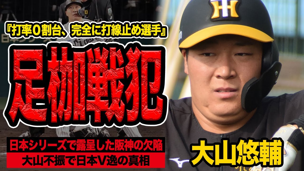 僕のせいです。日本シリーズで結果打率0 割台足かとしてチームを配に導いてしまっ たのです。 2025年10月30日聖地甲子園球場に 響き渡ったのは勝利の六行下おろしでは なく福岡ソフトバンクホークスの換期のお たけびでした。延長11回までもれた主頭 の末阪神タイガースは2対3で敗北本拠地 で5年ぶり12度目の日本1を決める相手 チームの同上げを見つめることとなりまし た。セリーグを85勝。223ゲーム差と いう圧倒的な強さで制覇した王者がなぜ 日本シリーズでは1勝4敗というあまりに も一方的な結果で涙を飲んだのか。多くの ファンが打線が繋がらなかった。あと1本 が出なかったと嘆えています。その漠然と した繋がらなかったという現象。その象徴 として1人の選手に商点を当てざるを得 ません。不動の5番チームの主軸である はずだった。大山裕介選手です。 レギュラーシーズンとはまるで別人のよう だった彼の不審は単なるコンディションの 波だったのでしょうか?それともこの短期 決戦においてチームの敗北を決定付けた 構造的な血管そのものだったのでしょうか ?本日は2025年日本シリーズのデータ を徹底的に解剖し、なぜ大山選手が打線の 足風とまで言われる存在になってしまった のか、その理由を徹底的に考察します。 SMBC日本シリーズ2025第5戦2対 2の同点で迎えた延長11回表 は野村イサム選手がタイガースの守護神 岩崎スブル投手からあ対千金の勝ち越し ソロホームランをライトスタンドへ運び ます。これが決勝点となりソフトバンクが 4勝敗で日本1の影を掴み取りました。 中を待った国防勇監督はインタビューで まず154試合戦った選手たちに本当に 感謝していますと選手を称えました。 そして今シリーズ出場できなかった中村明 選手のユニフォームを手に今年に関しては 4軍までの全ての選手スタッフ首脳人の力 がなければ日本1を達成できなかったと 組織全体の勝利であることを強く印象つけ ました。昨年のクライマックスシリーズ 配体の悔しさを記だからこそその言葉には 重みがありました。一方、破れた阪神 タイガース、藤川監督はベンチ前で腕を 組み、目の前で繰り広げられる換期の輪を ただじっと見つめていました。試合後の インタビューでは。そうですね、やっぱり 底力がありましたね。非常に強かったです ねと、まずは勝者であるソフトバンクの力 を素直に称えました。して悔いが残るよう なことは全くしてませんから力が相手が 上回ったとですからやるべきことが 見つかったとそれはチームにとって非常に ありがたいことと潔ぎよく敗北を認めすに 視線は次なる戦いに向いていることを示唆 しました。選手たちスタッフの皆さんには 伝えましたけど胸を張ってリーグ優勝の 報告をこれからしていこうと指揮官はそう 言って前を向きました。しかし監督が語っ た力が上回ったというその力の里は具体的 に何だったのでしょうか?投手人は第2戦 の大配を覗けばエースの村上正期投手を 始め、先発陣人は試合を作りました。第5 戦では今期NPB記録となる56試合連続 無失展という禁事党を打ち立てていた石井 大一投手が8回に柳田佑き選手に通コの 同点を浴びるという悪夢もありましたが シリーズ全体を見れば当手人が攻められる べきではありません。問題はあまりにも 明白でした。打線です。得点力の絶望的な 欠除です。そしてその昨日付全の中心にい たのが5番大山裕介選手でした。シーズン 中あれほど勝負強さを発揮し、打線を牽引 した彼はこの大部隊で攻撃の流れを こごとく寸断する足風となってしまったの です。 [音楽] 1人の選手を先犯扱いするのは酷だという 声もあるかもしれません。もちろん敗北の 責任はチーム全体にあります。しかし大山 選手の不審は単なる不調という言葉で 片付けられるレベルをあまりにも逸脱して いました。彼が足風であったと断事ざるを 得ない明確な理由が2つあります。理由1 異常なの不審と最悪の場面での凡体第1の 理由は彼の不審が統計所異常でありかつ それが常に試合の勝敗を左右する最悪の 場面で起きてしまったことです。今 シリーズ大山選手は最後まで開音を聞く ことができませんでした。シリーズ第3戦 終了時点で11打数無安だ。第4戦では セカンド頃の間に1打点を上げましたが、 それが唯一の貢献となり、最終的に シリーズ打率は衝撃的な水15打数無安の まま、彼の2025年シーズンは幕を閉じ ました。レギュラーシーズンであれだけ 勝負強さを見せた打車がなぜこれほどまで に打てなくなったのか。その象徴が本拠地 甲子園に戻った第3戦1点を6回裏の攻撃 でした。先頭の森下翔太選手が子宮で出塁 し、続く4番佐藤明選手の打席で2頭を 観光。ここでソフトバンクバッテリーは カウント31から佐藤輝選手との勝負を 避け深刻軽園を選択します。無視12塁 甲子園のボルテージは最好調に達し、誰も が逆転への期待を膨らませた。まさに シリーズの分岐点でした。しかし、ここで 打席に立った5番大山選手は期待を一心に