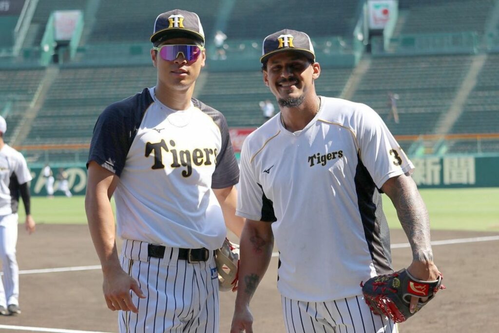 今日の試合前練習の様子です! #佐藤輝明 選手 #ジェフリーマルテ 選手 #原口文仁 選手 #青柳晃洋 選手 #梅野隆太郎 選手 #陽川尚将 選手 #大山悠輔 選手 #阪神タイガース #挑超頂 #ウル虎の夏2021 Hanshin TigersHanshin Tigers Official MediaNPB Central LeagueOfficial Mediaウル虎の夏2021ジェフリーマルテ佐藤輝明原口文仁大山悠輔挑超頂梅野隆太郎阪神タイガース陽川尚将青柳晃洋 NPBHUB.COM | The Fanbase of Nippon Baseball & Nippon Professional Baseball