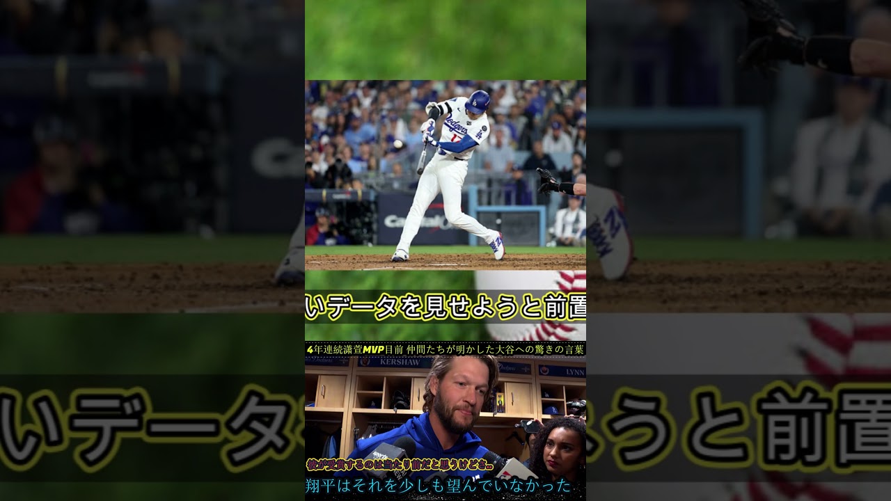 3人とも素晴らしい打者だが、その中で 1人だけ次元が違う存在がいる。それが 翔平大谷だと語り、大谷の二刀流を奇跡の 現象として称えた。オルティス氏は続けて 彼のように打撃と投球をどちらも一流で こなす選手を私は今まで見たことがないし これからも現れないと思うとのべ信じられ ないデータを見せようと前置きした上で ポストシーズンを含めた今期大谷が放った 所速100マイル約160年9月以上の 打球がメジャートップであることを紹介し た。さらに100マイルを超える投球数で もリーグ3位に入っていると語り、最も 早い打球を放つ男が最も早い球を投げて いるなんてありえないことだ。しかもその 両方がエリートレベルで成立しているんだ と力強く語った。