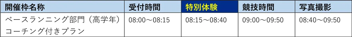 また、「ベースランニング部門」参加前にワンポイントレッスンが受けられる「コーチング付きプラン」や、「カジュアルラン部門」と合わせてプレミアムラウンジでのお食事が体験できる「球宴付きプラン」・球場ベンチ裏のロッカールームを更衣室として利用できる「ロッカー利用プラン」といった販売数限定の「特別体験付きプラン」も登場。