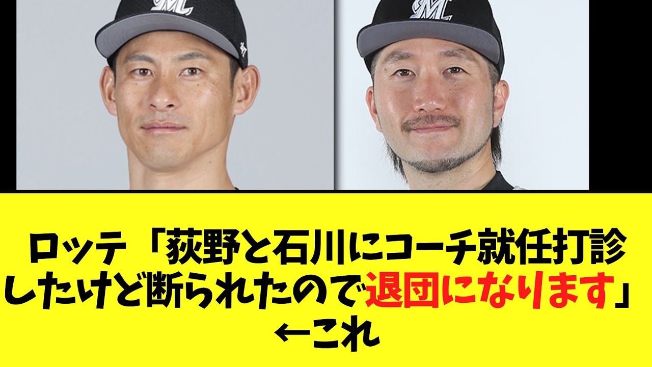 ロッテ「荻野と石川にコーチ就任打診したけど断られたので退団になります」 ←これ