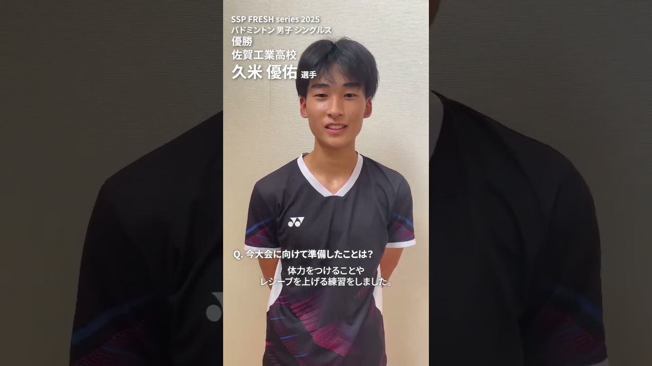バドミントン競技 男子シングルス | 優勝🏆久米優佑(佐賀工業) | SSPフレッシュシリーズ2025 佐賀工業高等学校2年組介。 素直に嬉しいです。コンディションが悪かったのでそれを踏まえて 80点です。 体力をつけるところやレシーブを上げる練習を取りけました。 [音楽] 九州大会ではベスト 4以上に入って全国ベスト 8が目標です。 ます。 #佐賀 #新人戦 #高校 #バドミントン #2025 Hiroshima Toyo Carp中村恭平広島東洋カープ NPBHUB.COM | The Fanbase of Nippon Baseball & Nippon Professional Baseball