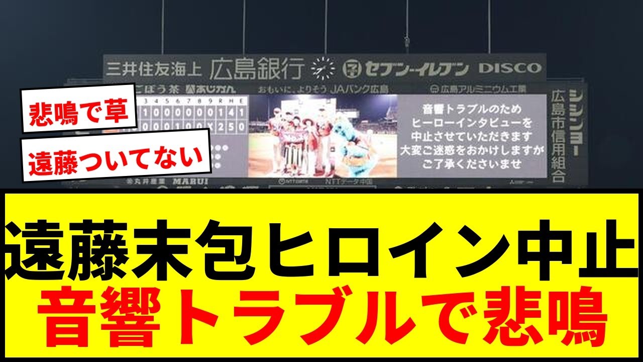 [音楽] エスカヒロイン中心トラブルで悲鳴。 [音楽] 3 日松田スタジアムで行われた広島第日戦で球場期にトラブルが発生しました。この影響で広島の勝利後のヒーローインタビューが中止となりファンからは悲鳴が上がりました。先発の遠藤投手は 850 日ぶりの勝投資となり末選手は決勝の 8号ソロを放ち2 人がお立ち台に上がる予定でした。試合中にもアナウンスが途切れるなどのトラブルがあり復旧が間に合わなかったと見られます。 [音楽] エンド投手の2年ぶりの勝利。選手の HR ニズでのヒーローインタゲーは本当に見たかった。 7 月はヒロインなったけしばらく使われなかった壊れたんじゃろうの。 森浦しょうもない音響ブルで変な間が空いたのに集中力とって予行く。 国書のトレティ剤がやられたんでしょうね。エンドを持ってないな。 球団益を有効に使うためにはこのような設備にも投資すべきではないのでしょうか。 ファーストランナーとアナウンスされること旅々とにかくわけも分からない間があえて水を刺された感があります。仮に井上監督がダイソを出してなかったらこのトラブルに気がつかないマ合いが終わりとなってたかも。 [音楽] [音楽] 遠藤の2 シーズンぶりの勝利だったのに茨城の親御さんや関係者の方々もヒーローインタビューを解われずに残念。 ちゃんとプロ野球の試合が運営させれるよう必要最低限の設備メンテナンスはやろうや。これで中日が逆転勝ちしてたらもうすごく叩かれて他だろうな。 そういう意味でもセカネはナイスキャッチ。 萎えてないからびっくりしたんじゃろう。 せっかく2 年ぶりの先発で勝利したのにエ藤もついてないな。勝利のぬ。勝利の門。 [音楽] お [音楽]