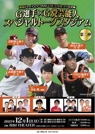 昨年も開催した読売ジャイアンツ×IMM THEATERコラボ企画『G選手×G党芸能人 スペシャルトークスタジアム 第二弾』が12月1日(月)にIMM THEATERにて開催することが決定しました。