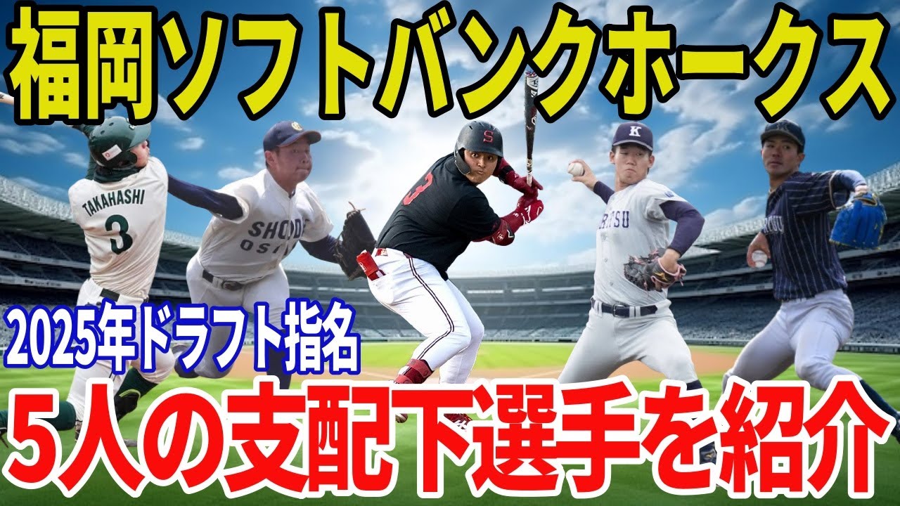 皆さん、こんにちは。プロ野球です。 2025年福岡ソフトバンクホークスの ドラフトは単なる戦力補強ではありません でした。それは長年チームの象徴として 君臨してきた柳樹の時代から新たな主役が 登場する世代交代の始まりを告げるもの でした。その中心にいたのが佐々木林太郎 高校通算140本塁だという圧倒的な実績 に加えスタンフォード大学で磨かれた先進 的な打撃理論を武器にプロの舞台へと 飛び込んできました。彼の名前がコールさ れた瞬間ホークスファンの心には確かな 希望がったのです。しかし物語はそれだけ では終わりません。地元福岡出身の強案 稲川竜太は地元ファンの期待を背負い即戦 力としての活躍が期待されます。試合を 組み立てる義行派うん。鈴木ゴータは安定 感と緻密な投球術でローテーション入りを 狙います。育成力を信じて指名された素材 型ウワン佐原正斗は将来のエース候補とし て長期的な育成プランが描かれています。 打撃職人高橋高典は匠なバット コントロールで勝負強さを発揮し代々や ユーティリティとしての可能性を秘めてい ます。さらに育成枠で指名された8名の 挑戦者たちも忘れてはなりません。彼らは ホークスの育成力を信じ、夢を掴むために プロの門を叩きました。このドラフトは点 ではなく千未来のホークスを描く壮大な 設計図であり、チームの哲学と覚悟が 詰まった選択だったのです。即戦力枠まで ポジションやタイプの異なる選手たちを バランスよく指名した背景には長期的な 視野でチームを再構築するという明確な 意思が感じられます。単なる補強ではなく 数年後の主力を見据えた未来への投資。 この一手がホークスの新時代を切り開く 起点となるでしょう。それでは2025年 ドラフトで指名された選手たちの物語を 1人ずつ紐も解いていきましょう。この 動画が面白かったら高評価とチャンネル 登録をよろしくお願いします。それでは 早速見ていきましょう。佐々木り林太郎 新たな手法の期間まず語らずにはいられ ないのがこの男佐々木り太郎岩手県北上市 出身2005年4月18日生まれ身長 184cm 体重113kg右投げ左打ちの1塁種彼の 名前が呼ばれた瞬間会場は静まり返り そして完成が湧き起こりました。福岡 ソフトバンクホークスと横浜DNA ベイスターズの競合の末上島健二CBOが 引き当てた交渉権その瞬間ホークスの未来 が大きく動き出したのです。高校時代花巻 東高校で通算140本塁だという日本記録 を受立父佐々木浩監督のもで打撃理論と 野球感を徹底的に叩き込まれたA裁教育 その圧倒的なパワーと柔軟性を兼ね備えた スイングは花巻東の怪物として全国にその 名を轟せました。しかし彼はそのまま 黒入りする道を選びませんでした。選んだ のは世界の名門スタンフォード大学への 進学分部領導を掲げアメリカで学び戦うと いう慰例の決断。その挑戦には波々ならぬ 覚悟と心志しがありました。 スタンフォードでは1年目から主軸として 全試合スタメン出場52試合で打率3割1 部2輪OPS940という悪の成績を残し メジャースカウトからもNTBを経由せず MLB入りもあり得ると評価されるほど そんな佐々木り太郎をホークスは未来の 予番として指名しました。それは単なる 話題性ではありません。柳きという絶対的 な手法がキャリアの終盤に差しかかる今 時代の象徴となる選手を今のうちに確保 するという極めて戦略的な一手だったの です。王田春会長は長打力は先点的なもの 。彼にはその才能があると語り、交渉権 獲得後に本人との電話で一緒に高い目標を 持って頑張ろうと熱いラブコールを送った と言います。ただし課題もあります。現在 の体重は120kg。守備面では1塁人 あるいはDH器用が前提となる可能性も プロの舞台で戦うにはフィジカルの整備と 守備力の向上が求められるでしょう。それ でもホークスが彼に託したのは未来その もの打撃だけでなく知性人格そして勝負強 さ。佐々木林太郎は単なるスラッカーでは ありません。新時代のホークスを象徴する 主役なのです。稲川龍太、地元の強戦力の 期待佐々木林太郎という未来の手法を確保 したホークス。その次に選んだのは即戦力 としての現在の柱。それが九州教立大学の ウワ稲川龍太です。福岡県北九州市出身 2002年8月生まれ身長181cm 体重85kg。右投げ右打ちの本格派手 地元九州で育ち、地元九州で磨かれ、 そして地元福岡の球団に指名される。 まさにホークスのために生まれたような男 です。稲川投手の最大の武器は最速 152kmのストレート。その救出は重く 伸びると表され、打車の手元でぐっと 伸びる感覚を持つ、さらに楽のある フォークとスライダーを折り混ぜることで 三振を奪える投球スタイルを確立してい ます。大学リーグでは通算防御率1点台を 記録、特に4年秋には登板した全で急 クオリティスタートを達成。試合を壊さ ない試合を作る能力にたけた安定感のある 当手です。ホークスが彼を2位で指名した 理由は明確です。それは先発 ローテーションの最構築戦画広